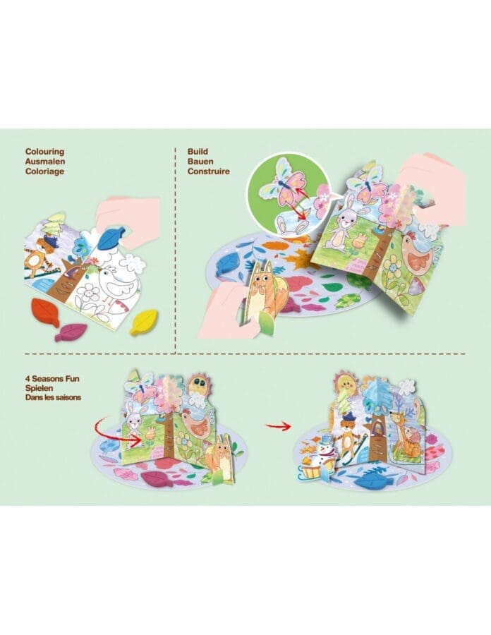 Η συσκευασία περιλαμβάνει 12 διαφορετικές κηρομπογιές (από φυσικό κερί μέλισσας) για απολαυστική ζωγραφική και χρωματισμό των έτοιμων εικόνων. Το παιχνίδι μπορεί να συνεχιστεί με την κατασκευή του σκηνικού, τοποθετώντας τα αγαπημένα ζωάκια πάνω στη “μακέτα”, και να ολοκληρωθεί με παιχνίδι ρόλων.
