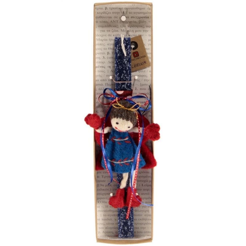 Το κερί είναι αρωματικό, χειροποίητο και κατασκευάζεται στην Ελλάδα. Τα υλικά διακόσμησης είναι υψηλής ποιότητας. Τα αντικείμενα επιλέγονται για την αυθεντικότητα και την μοναδικότητά τους. Βασικό μας κριτήριο είναι πάντοτε η επιλογή προϊόντων φιλικών προς το περιβάλλον και τον άνθρωπο. Η βάση προβολής και το εξωτερικό κουτί δώρου περιλαμβάνονται. Ύψος λαμπάδας: 30εκ.