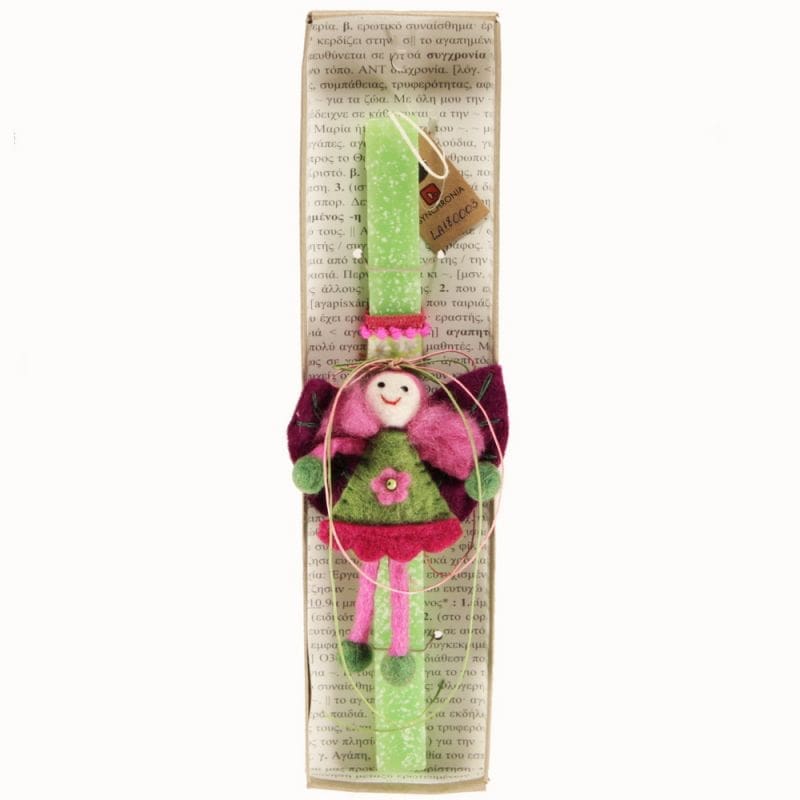 Το κερί είναι αρωματικό, χειροποίητο και κατασκευάζεται στην Ελλάδα. Τα υλικά διακόσμησης είναι υψηλής ποιότητας. Τα αντικείμενα επιλέγονται για την αυθεντικότητα και την μοναδικότητά τους. Βασικό μας κριτήριο είναι πάντοτε η επιλογή προϊόντων φιλικών προς το περιβάλλον και τον άνθρωπο. Η βάση προβολής και το εξωτερικό κουτί δώρου περιλαμβάνονται. Ύψος λαμπάδας: 30εκ.