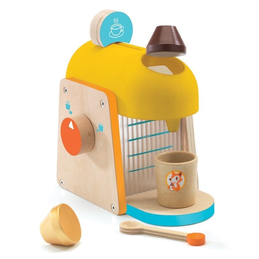 Η εσπρεσιέρα-καφετιέρα της εταιρίας Djeco δίνει την δυνατότητα στα παιδιά να παίζουν σε διαφορετικά παιχνίδια ρόλων! Μπορούν να ανοίξουν το δικό τους μαγαζί με καφέ ή απλά να σερβίρουν ζεστό καφέ στους καλεσμένους τους! Τα παιδιά με αυτόν τον τρόπο βελτιώνουν τον λόγο και αναπτύσσουν την φαντασία τους. Περιλαμβάνει: 2 ποτήρια καφέ, 2 κουταλάκια, 1 μπολ, 4 μπισκότα και 2 κάψουλες καφέ. Είναι κατασκευασμένο από ξύλο καουτσουκόδεντρου και πλαστικό. Τα χρώματα είναι μη τοξικά με βάση το νερό. Κατάλληλο από 3 ετών και άνω. Διαστάσεις συσκευασίας: 17.5x12x16 εκ.