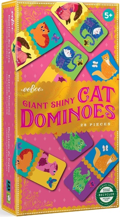 Τα Giant Shiny Cat Dominoes σίγουρα θα ενθουσιάσουν όλους τους λάτρεις των γατών! Κάθε κομμάτι ντόμινο, κομμένο σε ιδιαίτερο σχήμα, απεικονίζει δύο φανταστικές γάτες με λαμπερές χρυσές λεπτομέρειες. Το σετ περιλαμβάνει 28 ντόμινο διαστάσεων 4,5 x 2,25 ίντσες – ιδανικό μέγεθος για μικρούς παίκτες.