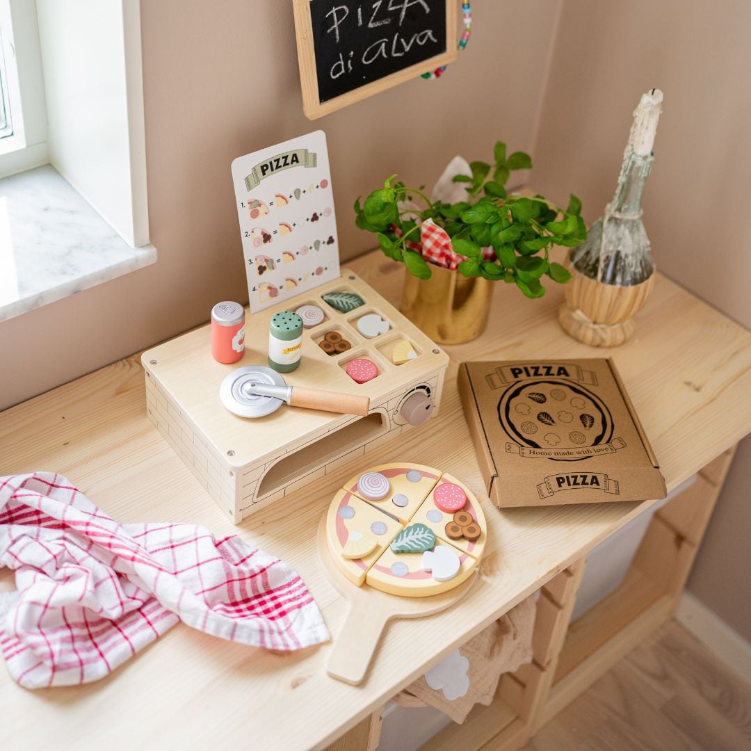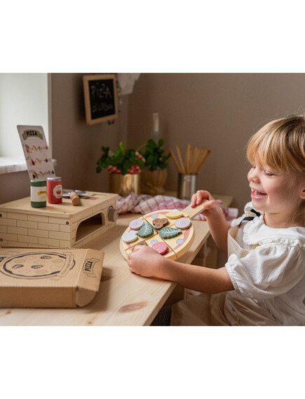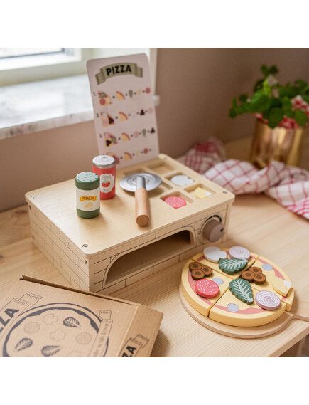 Με τον φούρνο πίτσας Jabadabado, τα μικρά σας μπορούν να ακολουθήσουν τις οδηγίες στην κάρτα μενού για να φτιάξουν μια ξύλινη πίτσα όπως την θέλουν, αναπτύσσοντας παράλληλα τις κινητικές τους δεξιότητες.