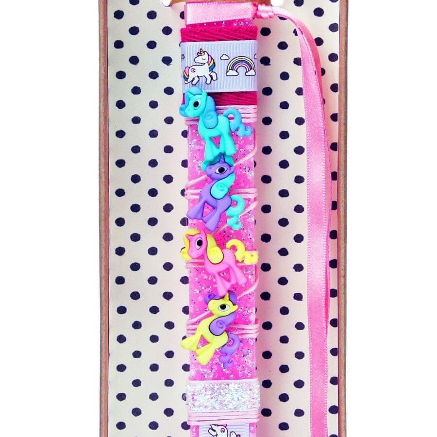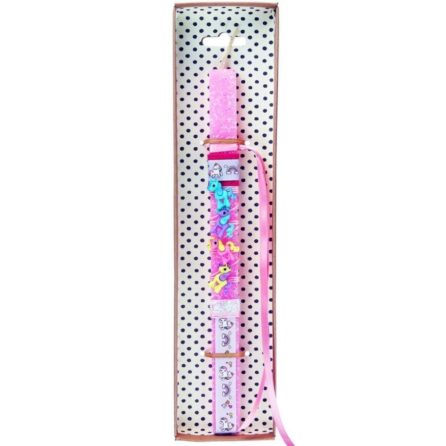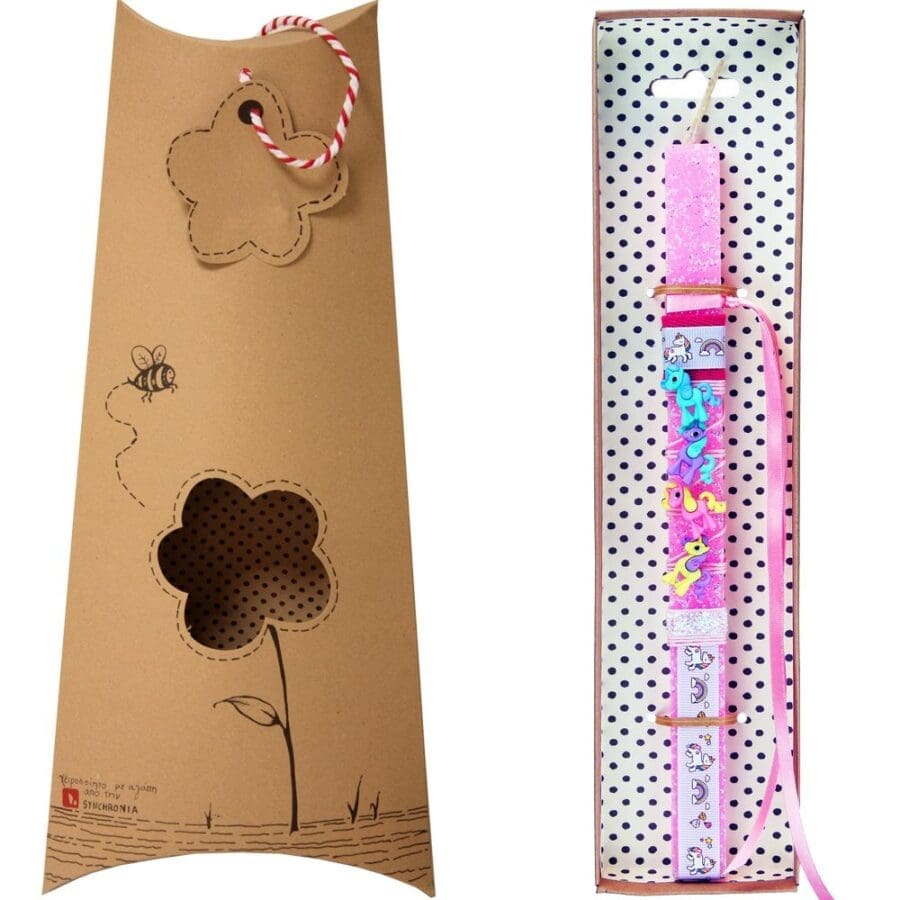 Παιδική πασχαλινή λαμπάδα διακοσμημένη με κουμπιά σε σχήμα μονόκερου με διάφορα χρώματα και στυλ. Μετά το Πάσχα θα ράψετε τα κουμπάκια σε ένα παλτό, σε μια ζακέτα ή σε μια τσάντα και θα είναι τέλεια!!! Διαλέξτε από τα διάφορα σχέδια. Τα υλικά διακόσμησης είναι υψηλής ποιότητας και εισάγονται αποκλειστικά από την SYNCHRONIA. Τα αντικείμενα σχεδιάζονται ή επιλέγονται όχι μόνο για την αισθητική αλλά και για την αυθεντικότητα, την φιλικότητα προς το περιβάλλον και το δίκαιο εμπόριο. • Το κερί είναι αρωματικό, χειροποίητο και κατασκευάζεται στην Ελλάδα • Περιλαμβάνεται η πρωτότυπη συσκευασία δώρου με ποτηράκι για το κερί • Ύψος λαμπάδας: 30εκ.