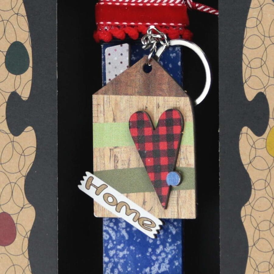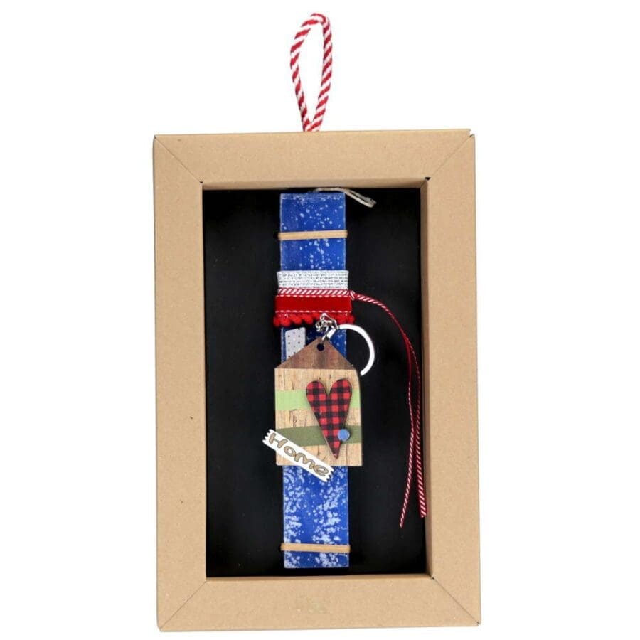 Λαμπάδα 20 εκ. διακοσμημένη με μπρελόκ με ξύλινο σπιτάκι. Το κερί είναι αρωματικό, χειροποίητο και κατασκευάζεται στην Ελλάδα. Τα υλικά διακόσμησης είναι υψηλής ποιότητας. Τα αντικείμενα σχεδιάζονται ή επιλέγονται όχι μόνο για την αισθητική αλλά και για την αυθεντικότητα, την φιλικότητα προς το περιβάλλον και το δίκαιο εμπόριο. Έρχεται σε συσκευασία δώρου. Ύψος λαμπάδας: 20εκ.