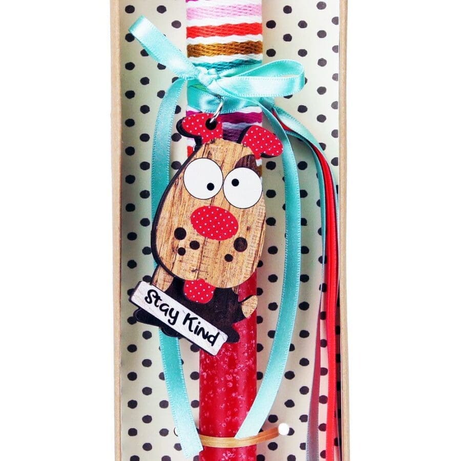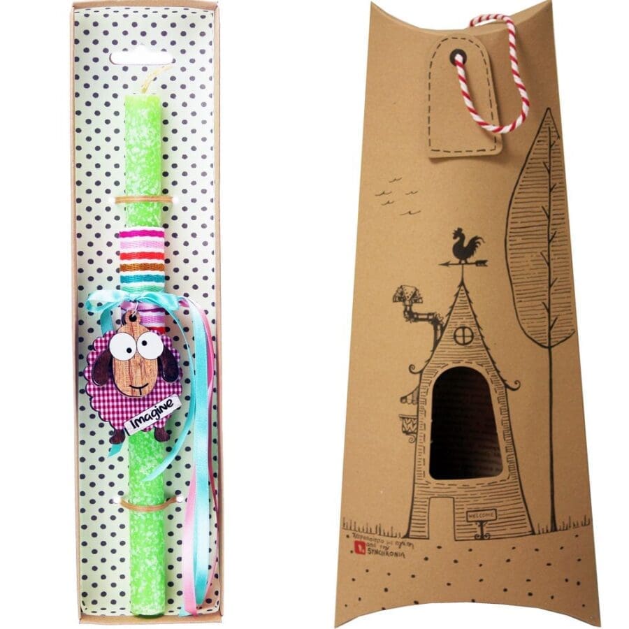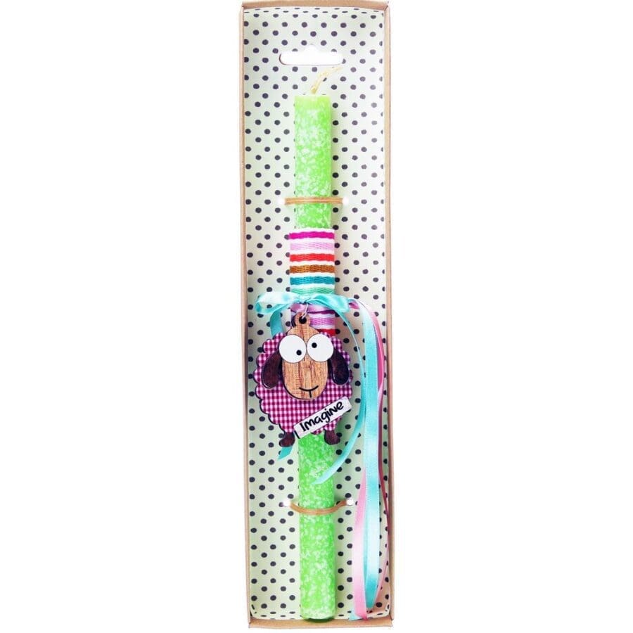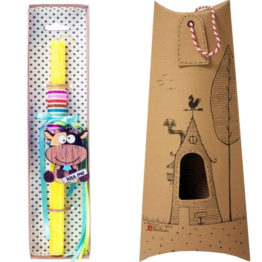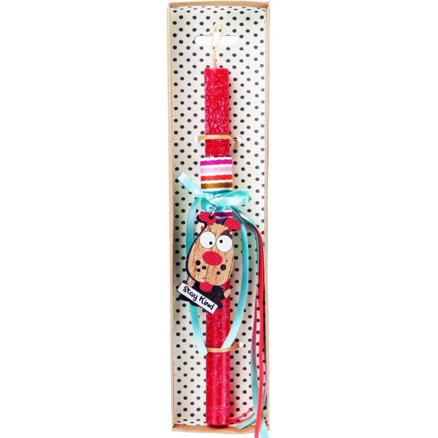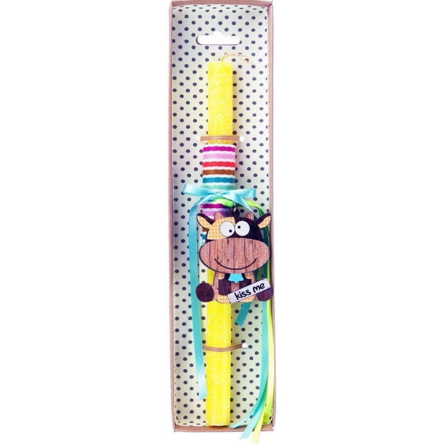 Πασχαλινή λαμπάδα διακοσμημένη με ξύλινο μπρελόκ με ένα αστείο ζωάκι και πολύ χαρούμενα χρώματα. Διαλέξτε από τα πολλά διαφορετικά σχέδια. Τα υλικά διακόσμησης είναι υψηλής ποιότητας. Τα αντικείμενα σχεδιάζονται ή επιλέγονται όχι μόνο για την αισθητική αλλά και για την αυθεντικότητα, την φιλικότητα προς το περιβάλλον και το δίκαιο εμπόριο. • Το κερί είναι αρωματικό, χειροποίητο και κατασκευάζεται στην Ελλάδα • Περιλαμβάνεται η πρωτότυπη συσκευασία δώρου με ποτηράκι για το κερί • Ύψος λαμπάδας: 30εκ.