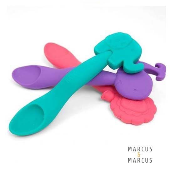 Το κουταλάκι εκμάθησης της Marcus & Marcus μετατρέπει την διαδικασία του φαγητού σε διασκέδαση για μικρούς και μεγάλους. Διατίθεται σε 5 χρώματα ενώ το κάθε χρώμα αντιστοιχεί και σε ένα χαρακτήρα από τα ζωάκια της Marcus & Marcus. To ζωάκι στο πάνω μέρος του κουταλιού προσφέρουν καλύτερο κράτημα στους μεγάλους ενώ το λεπτό κάτω μέρος καλύτερο κράτημα για τα μικρά χεράκια. Είναι ειδικά μελετημένο ώστε να μη τραυματίζει τα ούλα.