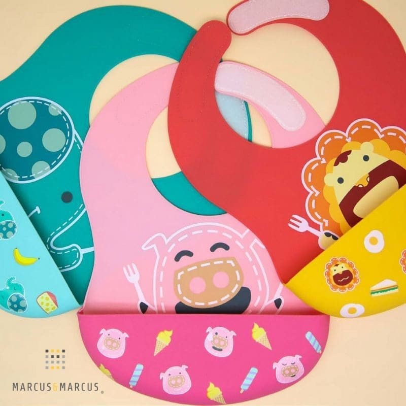 Οι 6 χαρακτήρες – ζωάκια της Marcus & Marcus μετατρέπονται στις πιο παιχνιδιάρικες –παιδικές σαλιάρες. Κατασκευασμένες εξ ολοκλήρου από ειδική σιλικόνη τροφίμων Platinum FDA, οι σαλιάρες  Marcus & Marcus είναι οι πιο απαλές της παγκόσμιας αγοράς & υπόσχονται να διατηρήσουν τα ρούχα του μικρού σας καθαρά χάρη στον ενσωματωμένο εμπρόσθιο συλλέκτη τροφών.