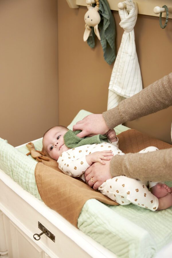 Οι λαβέτες είναι κατασκευασμένες από 100% βαμβακερό ύφασμα που τις καθιστά σούπερ απαλές και φιλικές προς το δέρμα του μωρού. Το υλικό απορροφά επίσης καλά την υγρασία και στεγνώνει γρήγορα.