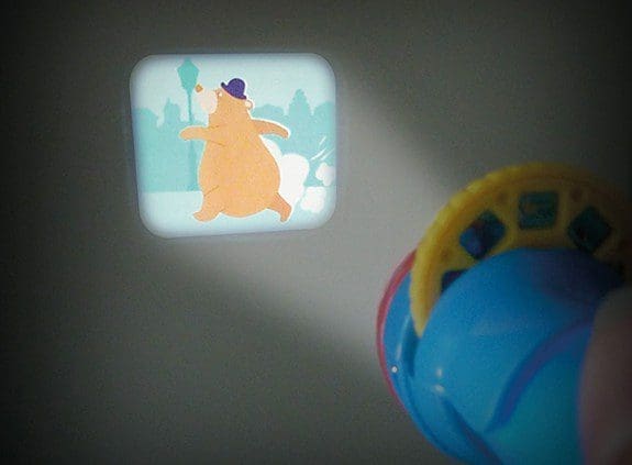 Πρόβαλε μια ιστορία τοποθετώντας εύκολα τους ειδικούς δίσκους με τις ιστορίες στο φακό, άναψε τον και πρόβαλε στον τοίχο την ιστορία. Γυρνώντας τον δίσκο η ιστορία ξετυλίγεται μαγικά.