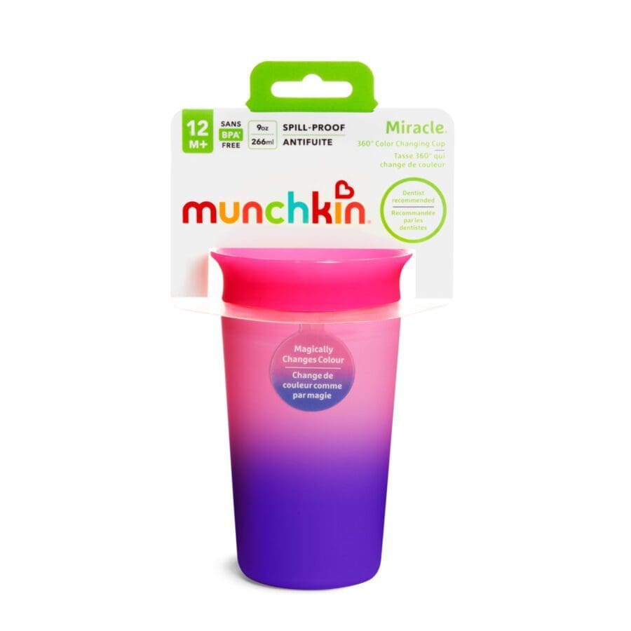 Η μαγεία της αλλαγής χρώματος συναντά τα θαυματουργά Miracle! Προσθέστε χρώμα και διασκέδαση στην ημέρα του παιδιού σας με το πολύχρωμο αυτό κύπελλο, που αποτρέπει τις διαρροές και υποστηρίζει την υγεία των δοντιών του. Το κύπελλο Miracle, που συνίσταται από οδοντιάτρους, έρχεται σε αντίθεση με τα τυπικά Sippy κύπελλα λόγω του σχεδιασμού 360 μοιρών, που επιτρέπει την κατάποση νερού και ροφημάτων από οποιοδήποτε μέρος του κυπέλλου χωρίς στόμιο! Αλλάζει χρώμα με την προσθήκη οποιουδήποτε δροσερού ποτού (κάτω από 14οC), οπότε είναι μαγευτικό με περισσότερους από έναν τρόπους.