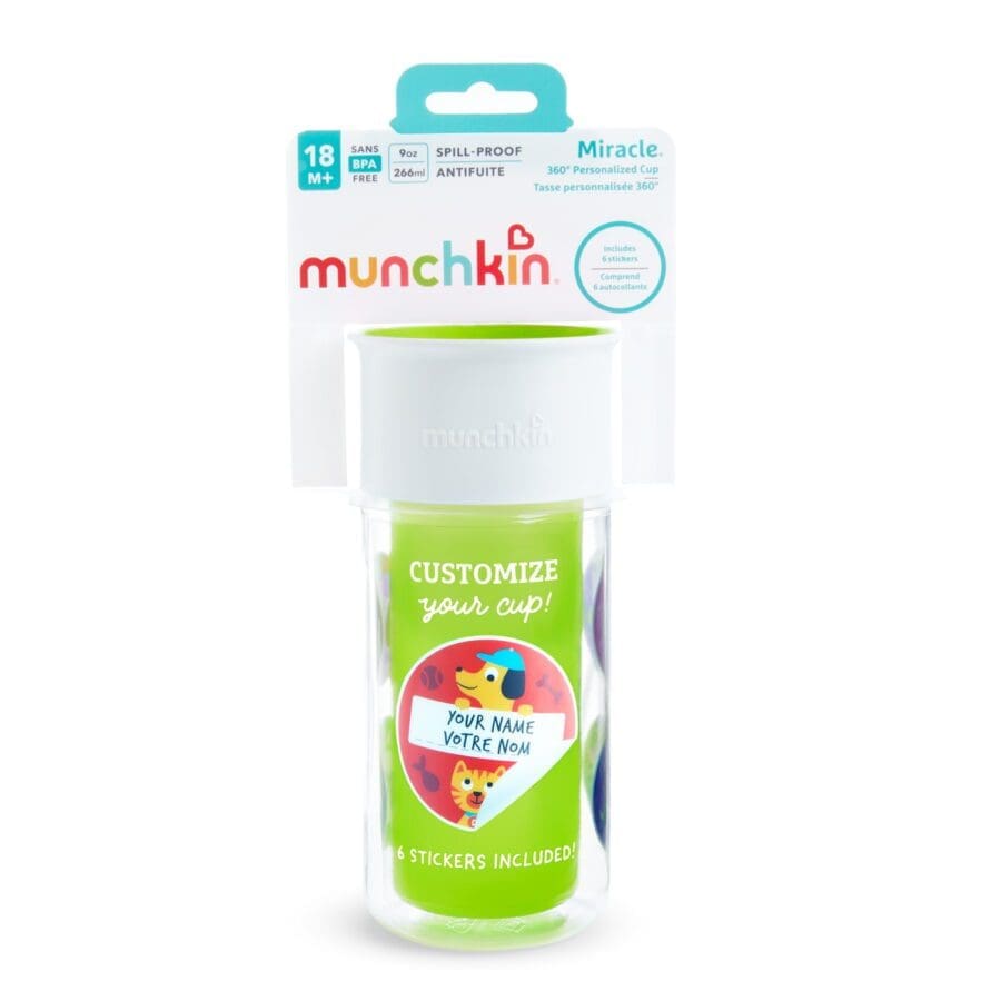 Διατηρήστε τα ροφήματά σας κρύα με το εξατομικευμένο κύπελλο 360° Miracle! Κολλήστε μερικά αυτοκόλλητα στο χρωματιστό εσωτερικό μέρος για περισσότερο στιλ, γεμίστε το με γάλα, χυμό ή νερό και βιδώστε το στο μεγάλο, διάφανο δοχείο για να σφραγίσει. Με έως έξι χαριτωμένα αυτοκόλλητα ζωάκια, το παιδί σας μπορεί να απολαμβάνει τα αγαπημένα του κρύα ροφήματα με μοναδικό στιλ. Και με το καπάκι Miracle 360 που δεν στάζει, δεν χρειάζεται να ανησυχήσετε ποτέ ξανά για πιτσιλιές και λεκέδες.