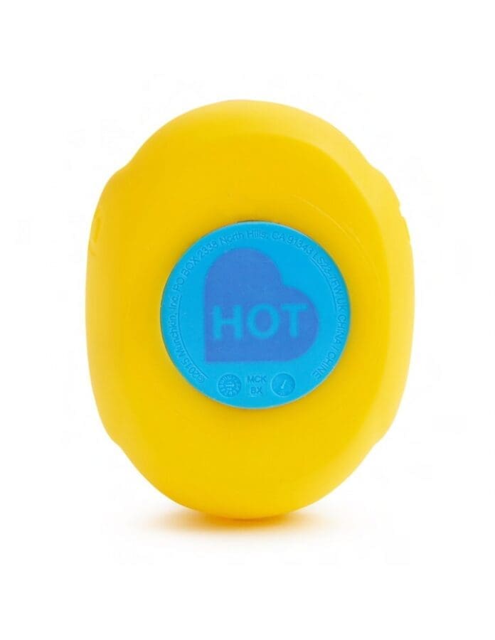 Παπάκι που επιπλέει στο νερό με ένδειξη στο κάτω μέρος που εμφανίζει την λέξη HOT για να σας προειδοποιεί όταν το νερό είναι πολύ ζεστό.