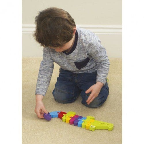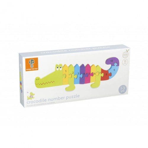 Με αυτό το ξύλινο παζλ 11 τεμαχίων σε σχήμα Κροκόδειλου το παιδί μπορεί να μάθει διασκεδαστικά τους αριθμούς. Βαμμένο σε έντονα χρώματα και τυπωμένο με καθαρό κείμενο, τα μεγάλα κομμάτια του είναι κατάλληλα για να τα πιάσουν τα μικρά χέρια.