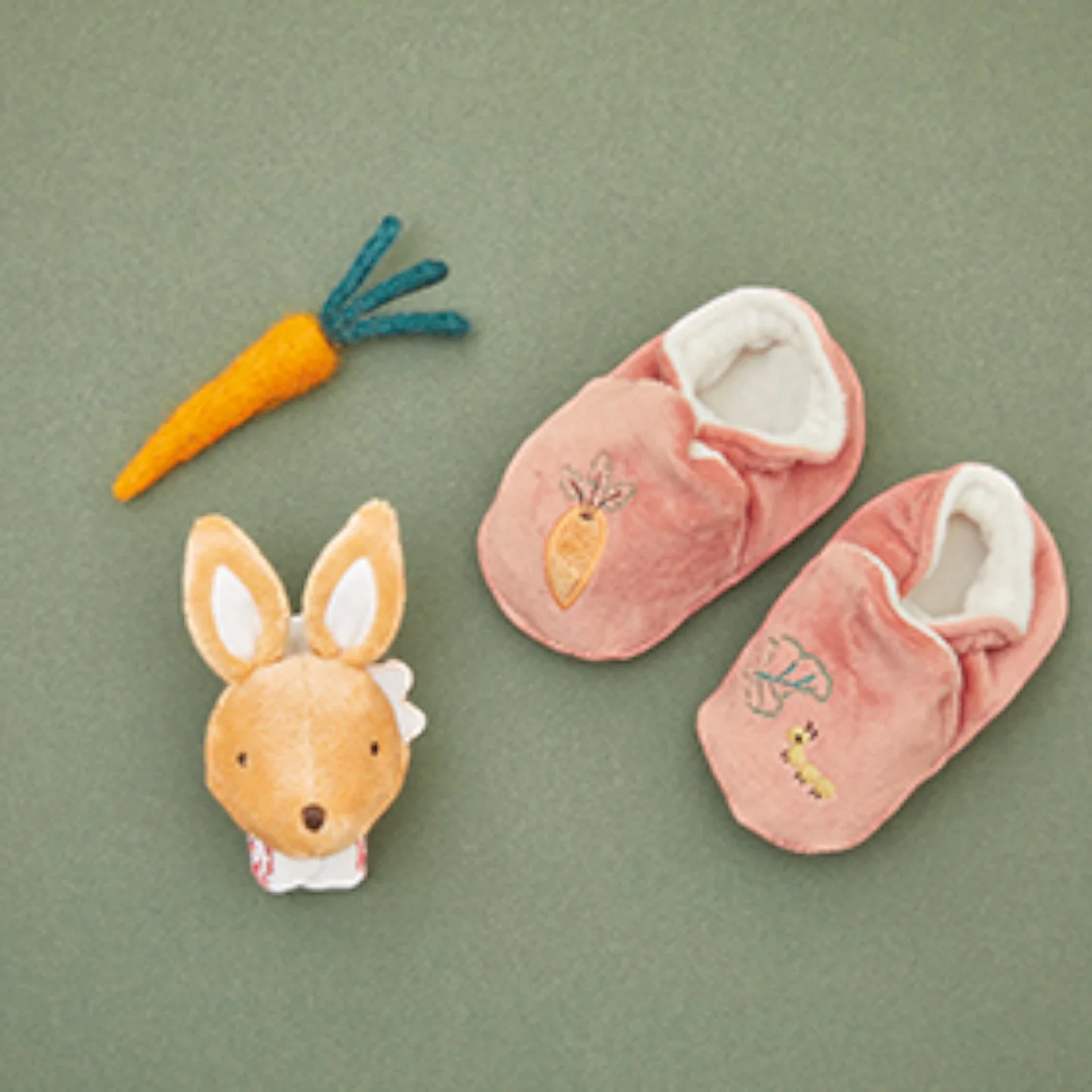 PETITES CHANSONS. Σετ παντοφλάκια και βραχιολάκι-κουδουνίστρα κουνελάκι