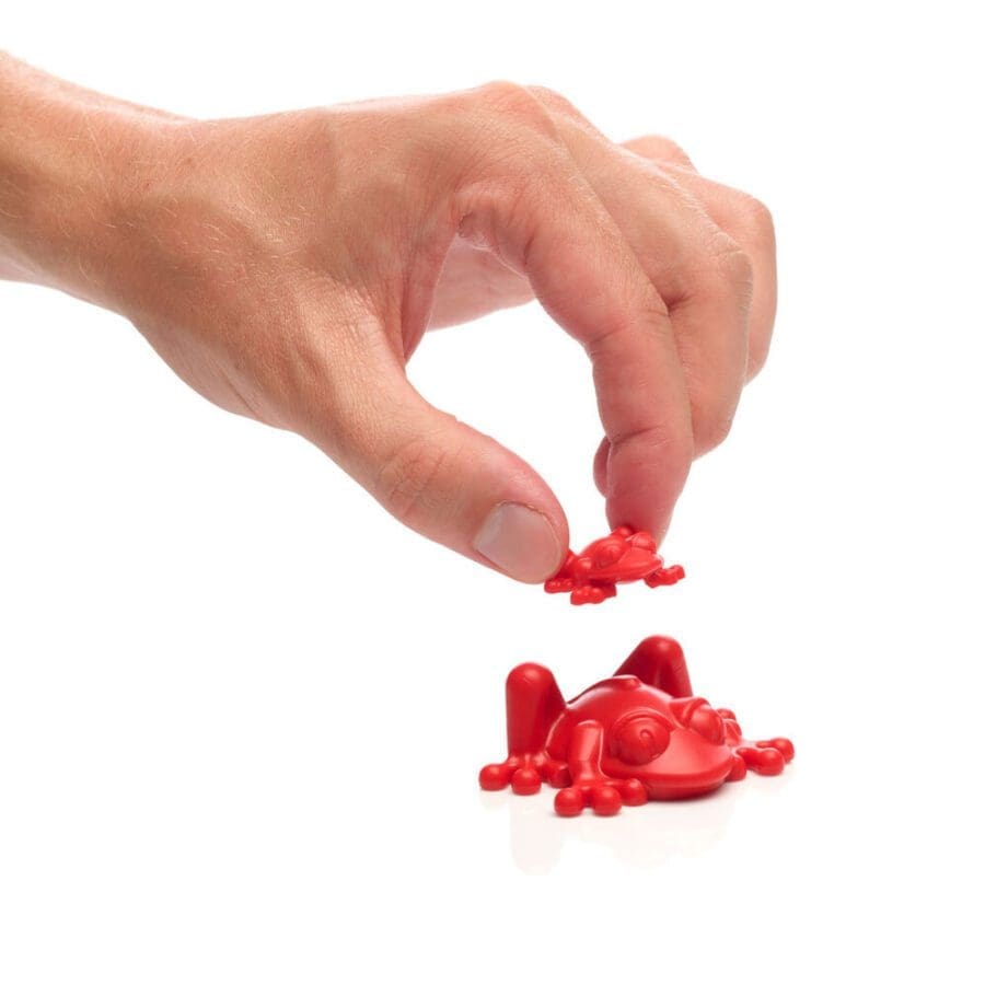 Οδηγήστε τους βατράχους σας σε όλη τη λίμνη και συγχρόνως , εμποδίστε άλλους παίκτες να κάνουν το ίδιο. Προσοχή όμως στα ψάρια. Ο πρώτος παίκτης που θα φέρει όλη την οικογένεια βατράχων στην άλλη πλευρά κερδίζει το παιχνίδι. Παίζεται σε 2 επίπεδα παιχνιδιού : Junior και Expert . Α. ΕΠΙΠΕΔΟ JUNIOR 6+ Τοποθετήστε τις οικογένειες βατράχων στο πλάι της λίμνης. Μετακινήστε τους βατράχους κατά μήκος της λίμνης, πηδώντας πάνω από ένα μονοπάτι κρίνων. Αλλά προσέξτε… τα ψάρια μπορούν να τρομάξουν τους βατράχους ! Ο πρώτος παίκτης που κέρδισε ολόκληρη την οικογένεια βατράχων σε όλη τη λίμνη κερδίζει το παιχνίδι! Β. EXPERT LEVEL 8+ Εδώ συνδυάζουμε τους βατράχους μας: • Φτιάχνουμε ομάδες , ώστε κανείς να μην μπορεί να σας σταματήσει. • Με παγίδα μικρών βατράχων μπλοκάρεις τον αντίπαλό σου. Για 2-6 παίκτες . Διάρκεια παιχνιδιού + – 20 λεπτά ΕΞΑΣΚΕΙ ΙΚΑΝΟΤΗΤΕΣ ΑΙΣΘΗΣΗ ΧΩΡΟΥ: 5 ΕΥΕΛΙΚΗ ΣΚΕΨΗ: 5 ΣΤΡΑΤΗΓΙΚΗ : 4 ΣΥΓΚΕΝΤΡΩΣΗ: 4 ΛΥΣΗ ΠΡΟΒΛΗΜΑΤΩΝ: 2 Περιεχόμενα: επιτραπέζιο παιχνίδι, 1 ψάρι, 6 οικογένειες βατράχων σε διαφορετικά χρώματα, κανόνες παιχνιδιού.