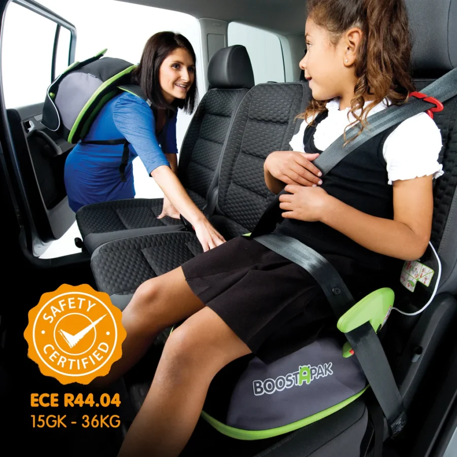 Τα BoostApak είναι ο καλύτερος τρόπος για να ταξιδεύετε με το μικρό σας. Είναι ένα σακίδιο που μεταμορφώνετε σε καθισματάκι Booster με αρκετό χώρο για να πάρει μαζί του παιχνίδια και απαραίτητα για το ταξίδι. Επίσης είναι ιδανικός τρόπος για το αυτοκίνητο της γιαγιάς ή το ταξί!